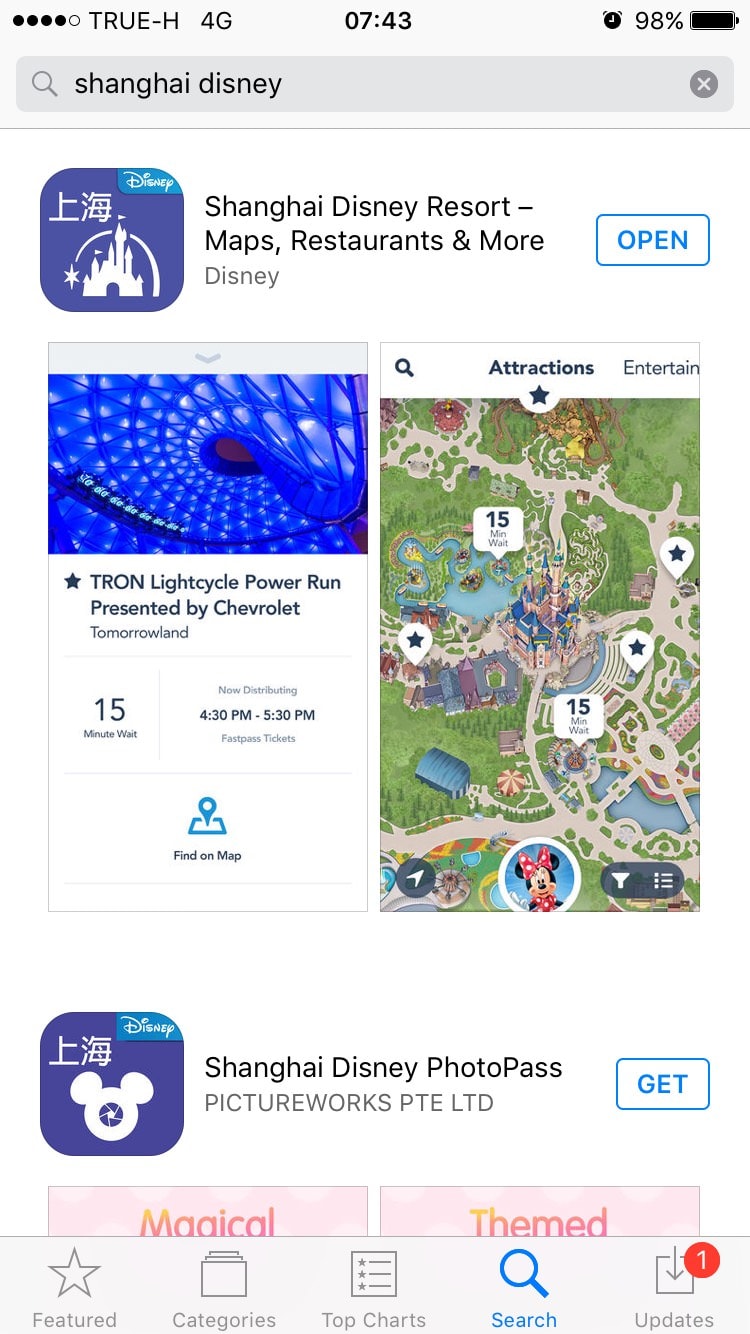 เอาล่ะทีนี้เราไปดูกันแบบเจาะลึกละเอียดๆ กันดีกว่าว่าแอพนี้เจ๋งอย่างไร ทำอะไรได้บ้าง โดยเราจะเริ่มจากเรื่องแรกสุดก็คือเรื่องของการ Download App กันก่อนนะคะ โดยแอพนี้สามารถ download ได้ตั้งแต่ที่เรายังไม่ได้เข้าสวนสนุกเลย โดยให้เรา search คำว่า ‘Shanghai Disney Resort’ ใน App Store หรือ Play Store ซึ่งแอพนี้ก็จะขึ้นมาให้เราเลือกเลยค่ะ จากนั้นก็ให้เราโหลดมาเตรียมตัวไว้ก่อนได้เลย เพราะจะทำให้เราสามารถวางแผนการใช้เวลาในสวนสนุกแห่งนี้ได้ดีขึ้น